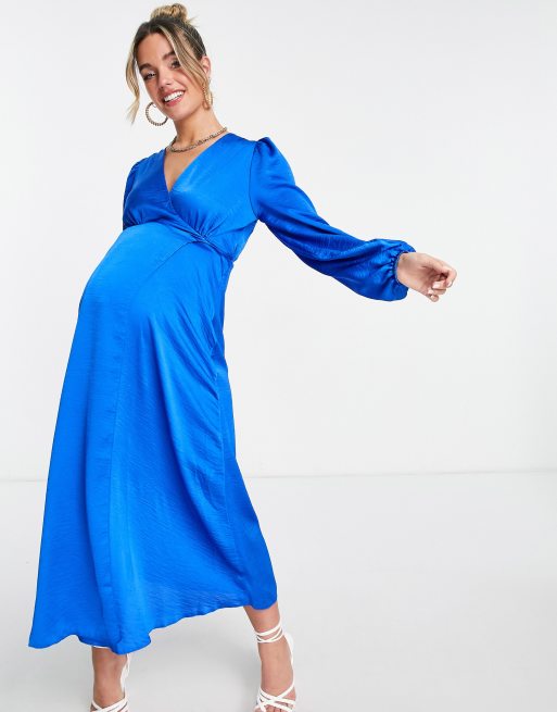 Queen Bee Maternity Wrap Dress In Blue Asos
